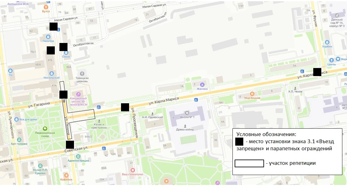 Схема перекрытия улиц Ленина и Карла Маркса.