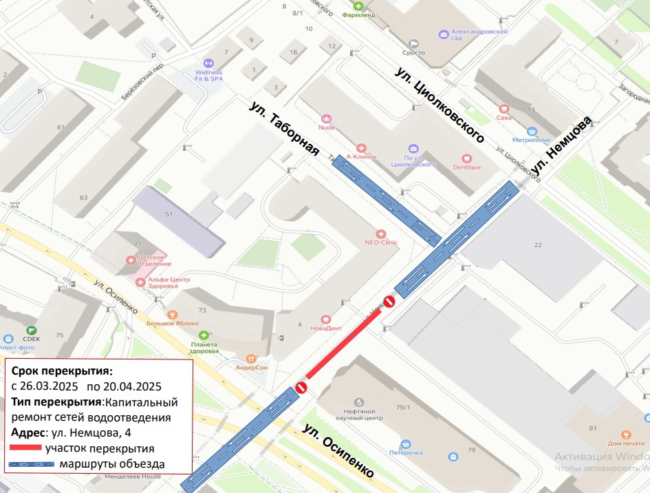 В центре Тюмени сегодня, 26 марта, перекрыли участок улицы Немцова у дома №4. Здесь проводится капитальный ремонт сетей водоотведения. Ограничения для автомобилистов продлятся до 24 апреля. На услуги водоснабжения и водоотведения работы не повлияют.