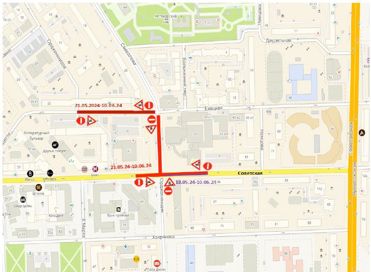 - по ул. Советской от дома №84 до ул. Орджоникидзе — с 18 мая по 10 июня;