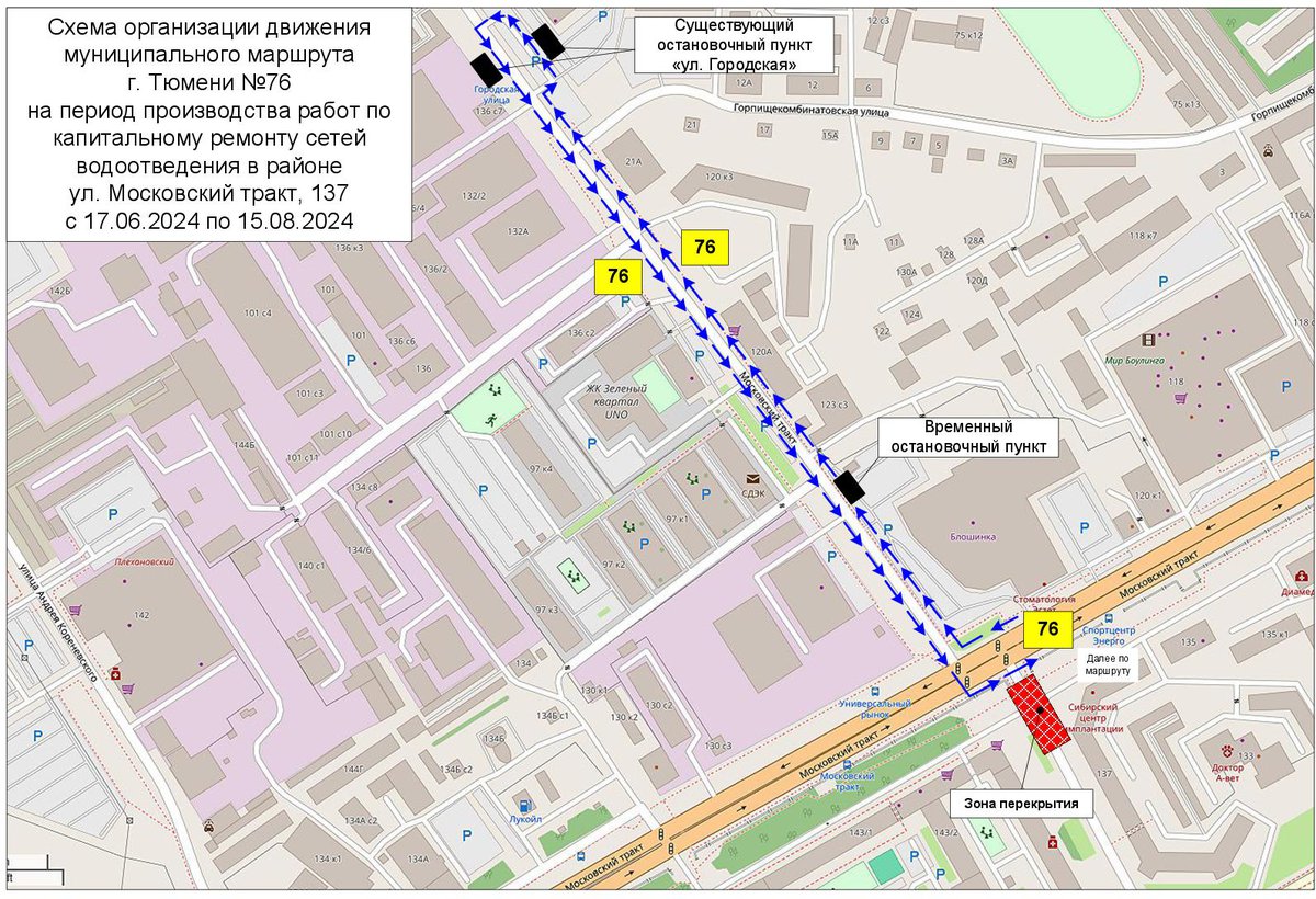 Из-за ремонта изменится схема движения маршрутки №76. Временная остановка предусмотрена у парковки рядом с «Блошинкой».