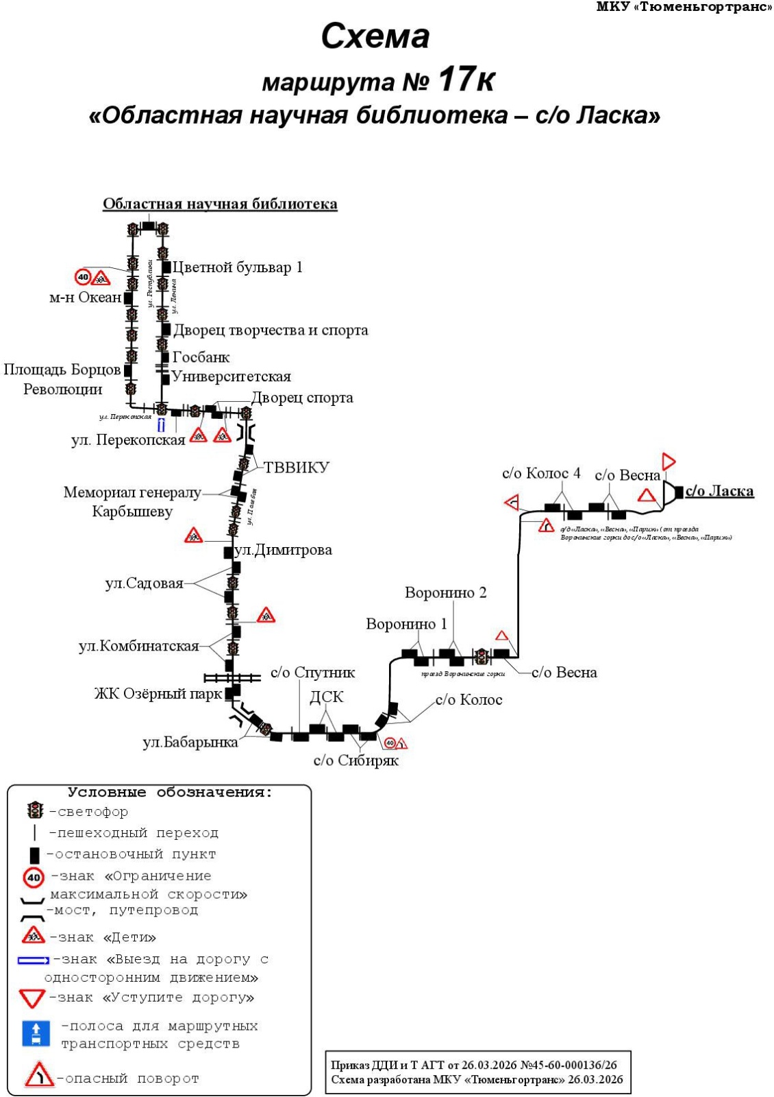 «Маршруту №17к будет присвоено новое наименование „Областная научная библиотека- с/о Ласка“, — сообщает МКУ „Тюменьгортранс“. — Интервал движения изменится с 2 часов 30 минут — 3 часов 30 минут на 44-58 минут».