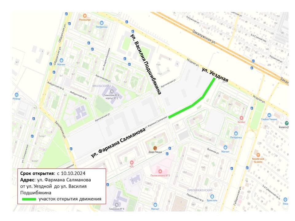 В четверг, 10 октября, в Тюмени откроется новый участок дороги на улице Фармана Салманова — от улицы Василия Подшибякина до Уездной. Об этом сообщает департамент дорожной инфраструктуры и транспорта администрации города.