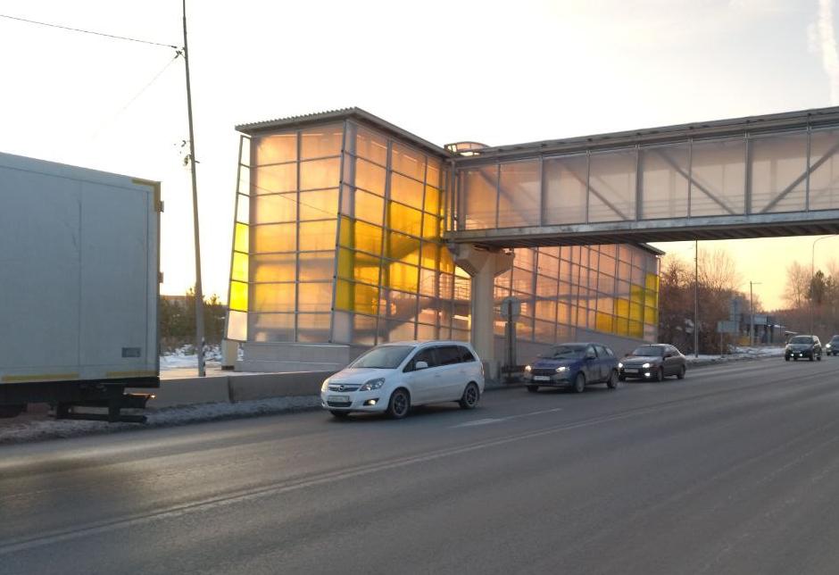 Новый надземный пешеходный переход обеспечит безопасность пешеходов и повысит пропускную способность транспортной развязки.