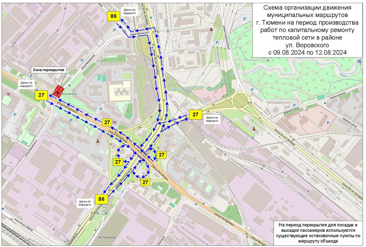 На четыре дня изменят схему движения автобусы №27 и №86, они пойдут в объезд по улицам Республики, 50 лет Октября, Монтажников. Останавливаться будут на существующих остановках.