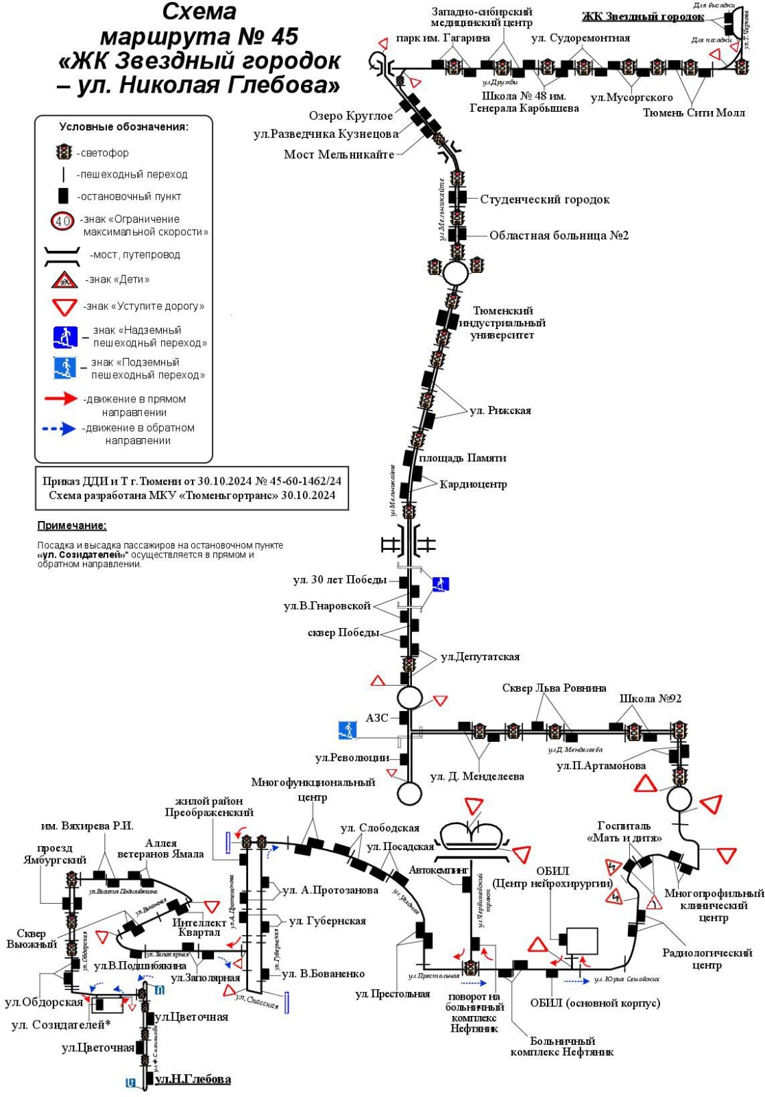 Маршрутка №45, которая курсирует от ЖК «Звездный городок» до улицы Созидателей, со стороны Дударева будет проезжать дальше по улице Фармана Салманова — до остановок «ул. Цветочная» и «ул. Николая Глебова».