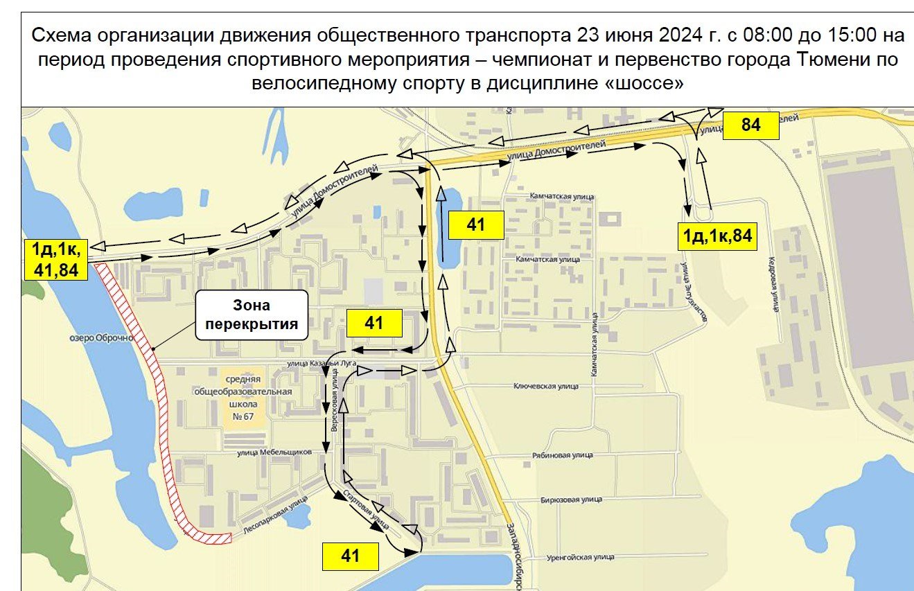Маршруты №№1д, 1к, 41, 84 пойдут в объезд перекрытого участка. Автобусы и маршрутки проследуют по улицам Стартовой, Вересковой, Казачьи Луга, Западносибирской.